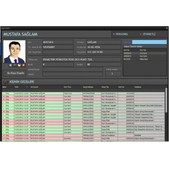 - Kişi kartlarında “Kişiyi Engelle” özelliği sayesinde kişi kartını kaybettiğinde başka birisinin kullanmaması için kart kullanıma kapatılabilmektedir.